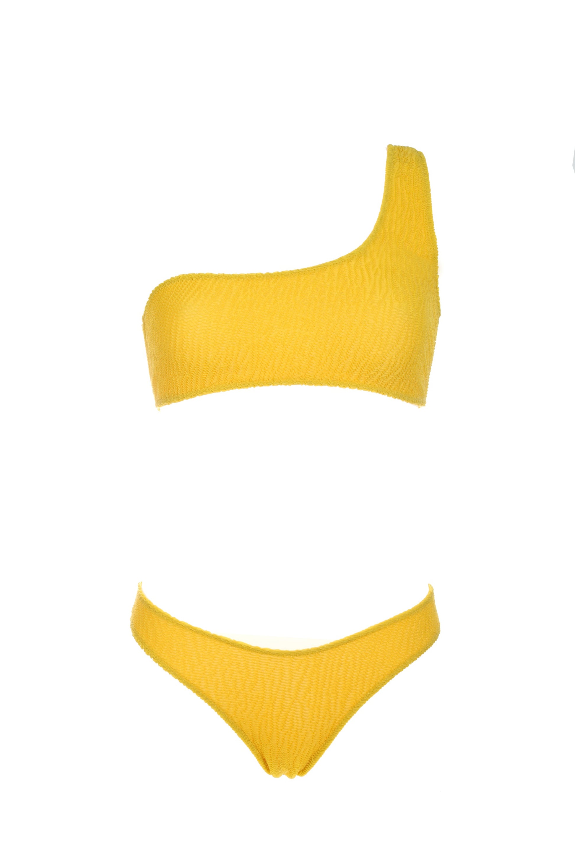 One-shoulder bikini top and high-leg briefs in stretch embossed fabric