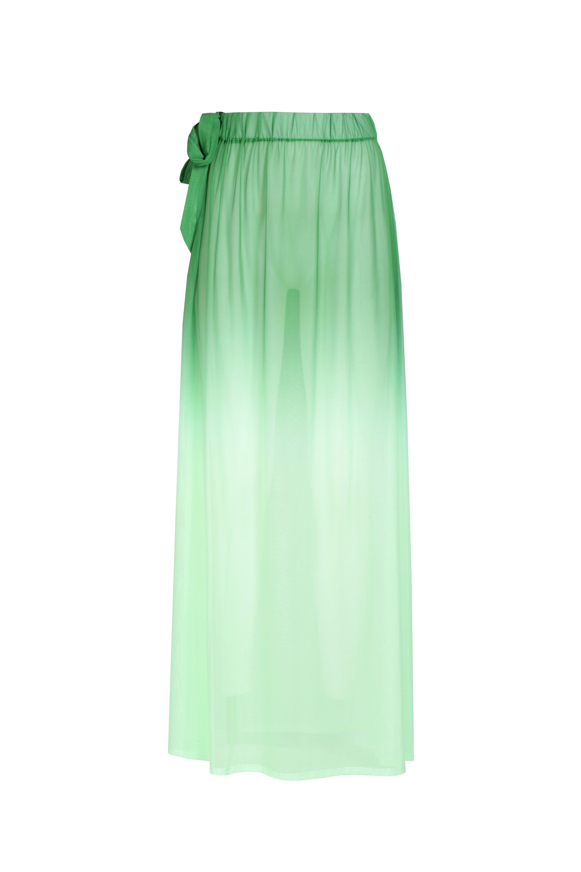 Perfect for a sophisticated and light look, the GN10 long skirt envelops the silhouette with an impalpable elegance. The pareo line with side knot gives movement and enhances the waist, while the shaded design creates a sparkling and sunny effect. The light and semi-transparent fabric is designed to be caressed by the summer breeze, ideal for a walk on the beach or an aperitif with a sea view.
