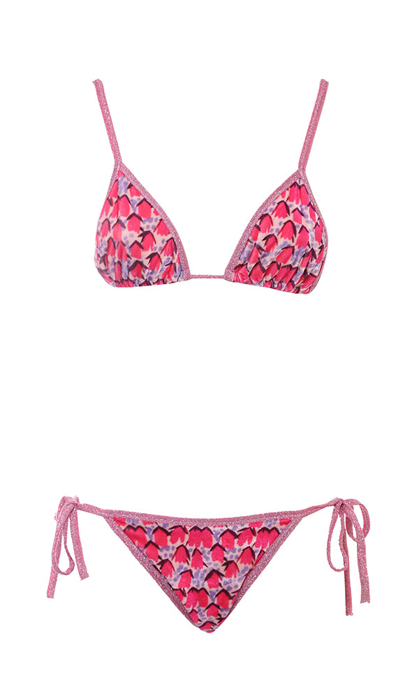 Triangle bikini and slip with laces in stretch velvet and lurex edges