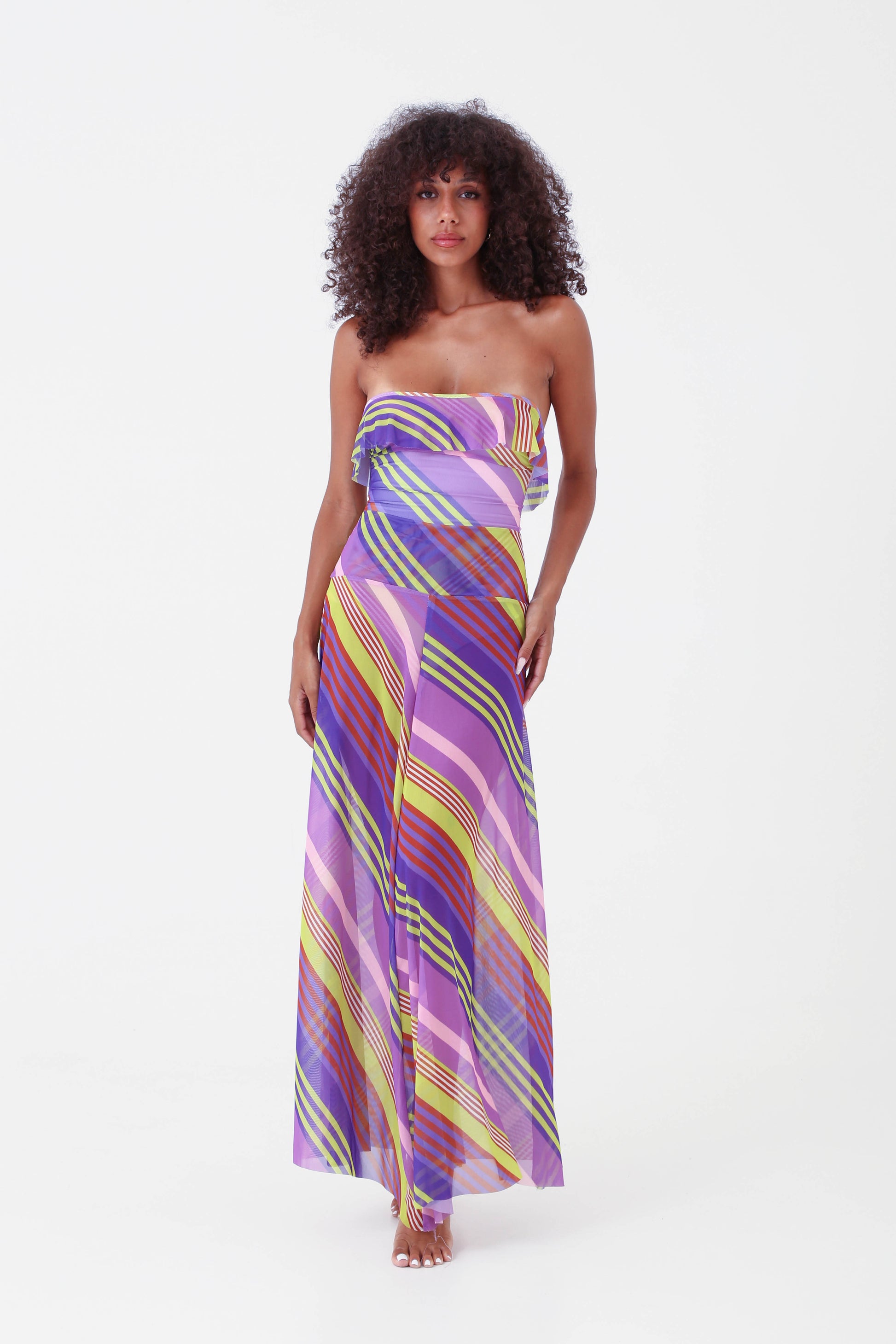 Leggera e fluttuante, questa gonna lunga a ruota in tulle conquista con la sua linea svasata e la vita alta che slancia la figura. Il design avvolgente esalta ogni movimento, rendendola un capo perfetto da indossare sopra il costume per un look raffinato e femminile.